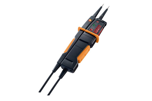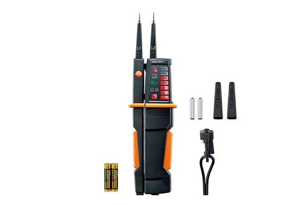 The testo 750-1 voltage tester enables voltage or de-energization on electrical circuits or systems to be determined reliably. The instrument meets the latest EN 61243-3:2010 voltage tester standard and has a safety specification according to CAT III. In addition, it is suitable for continuity testing and rotating magnetic field measurement.