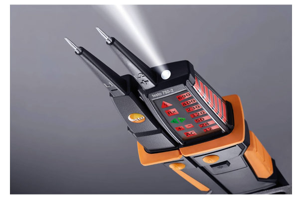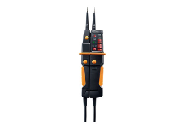 With the testo 750-2 voltage tester you can test electrical systems and equipment reliably and easily for voltage or de-energization thanks to the all-round LED display and unique fibre-optic technology. Compared to the testo 750-1, it is also suitable for single pole voltage testing to determine quickly whether conductors are live.