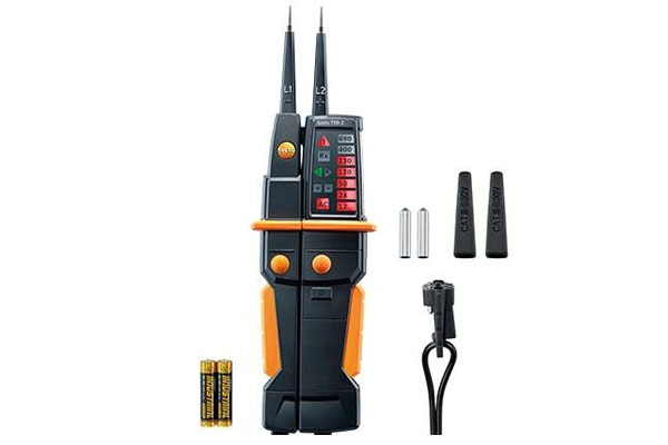 In addition to determining voltage or de-energization on electrical circuits or systems, the testo 750-2 voltage tester is also suitable for use as a continuity tester and for rotating magnetic field measurement. It also has an RC trigger function for testing residual current circuit breakers. Vibrating load buttons ensure that trigger tests cannot be carried out accidentally.