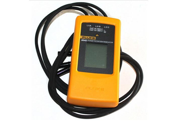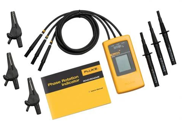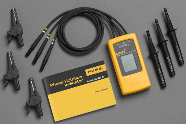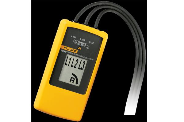 The Fluke 9040 is effective for measuring phase rotation in all areas where three phase supplies are used to feed motors, drives and electrical systems. The Fluke 9040 is a rotary field indicator and can provide clear indication of the 3 phase via an LCD display and the phase rotation direction to determine correct connections. It allows rapid determination of phase sequence and has a voltage (up to 700 V) and frequency range suitable for commercial and industrial applications. The included test probes have a variable clamping range for safe contact, also in industrial sockets.