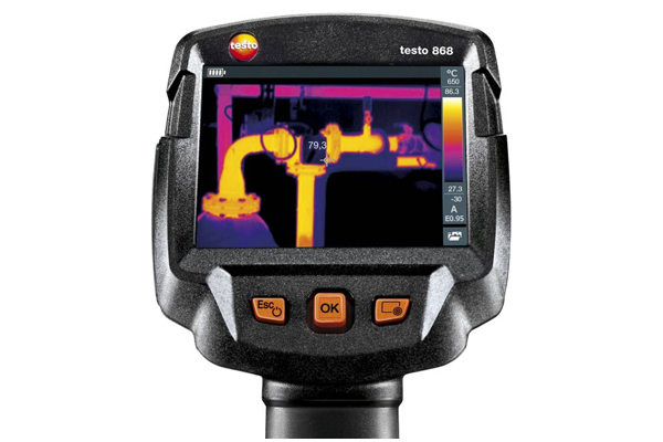 Detect leaks, identify overheated connections, pinpoint thermal bridges or detect structural defects. The testo 868 thermal imager was developed for applications in daily maintenance and installation work in trade and industry. It enables quick and reliable work when you are detecting defects and carrying out maintenance.Technical highlights of the testo 868 thermal imager