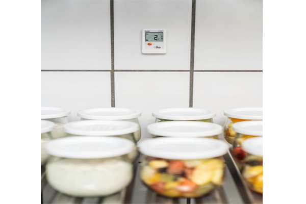 HACCP-compliant, as well as having international HACCP certification, which means it is ideally suited for measurements in the food industry (e.g. for storage temperature measurement). Particularly practical: the data logger has water spray and jet protection according to IP 65. This enables it to be left in the measuring location even when warehouses are being cleaned. The temperature data logger is also suitable for temperature control in refrigerators or cold stores, because it can be used at temperatures down to -30 °C.