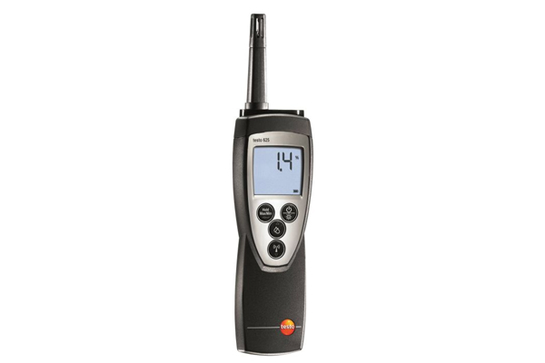 The testo 625 compact thermohygrometer has a connectable humidity sensor which measures the air temperature and relative humidity. In addition, it also calculates the dew point and wet bulb temperature.The meter is equipped with a large, easy-to-read, backlit display, a hold function which allows you to freeze the last reading and min and max readings that can be displayed at the touch of a key. In addition, the testo 625 has a battery-friendly power off mode and a long life moisture sensor which ensures best possible results for years to come.