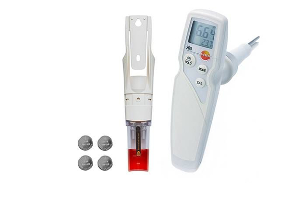 - The testo 205 enables pH measurements to be carried out in semi-solid media. The integrated temperature sensor ensures precise temperature compensation, and therefore accurate pH measurement